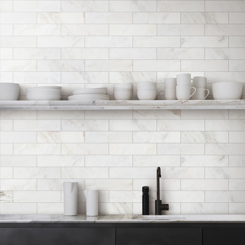 Capture a spa-like ambience with the Valentino Bianco mosaics. With tones of white and light brown veining in a honed finish creating a luxuriously soft look. Explore the rest of the Valentino Bianco White collection and be inspired to combine these tiles with different sizes and shapes for a contemporary feel.